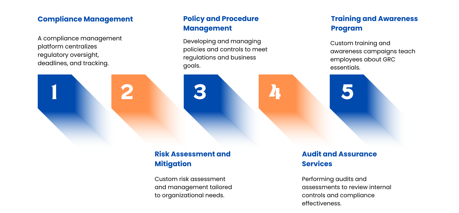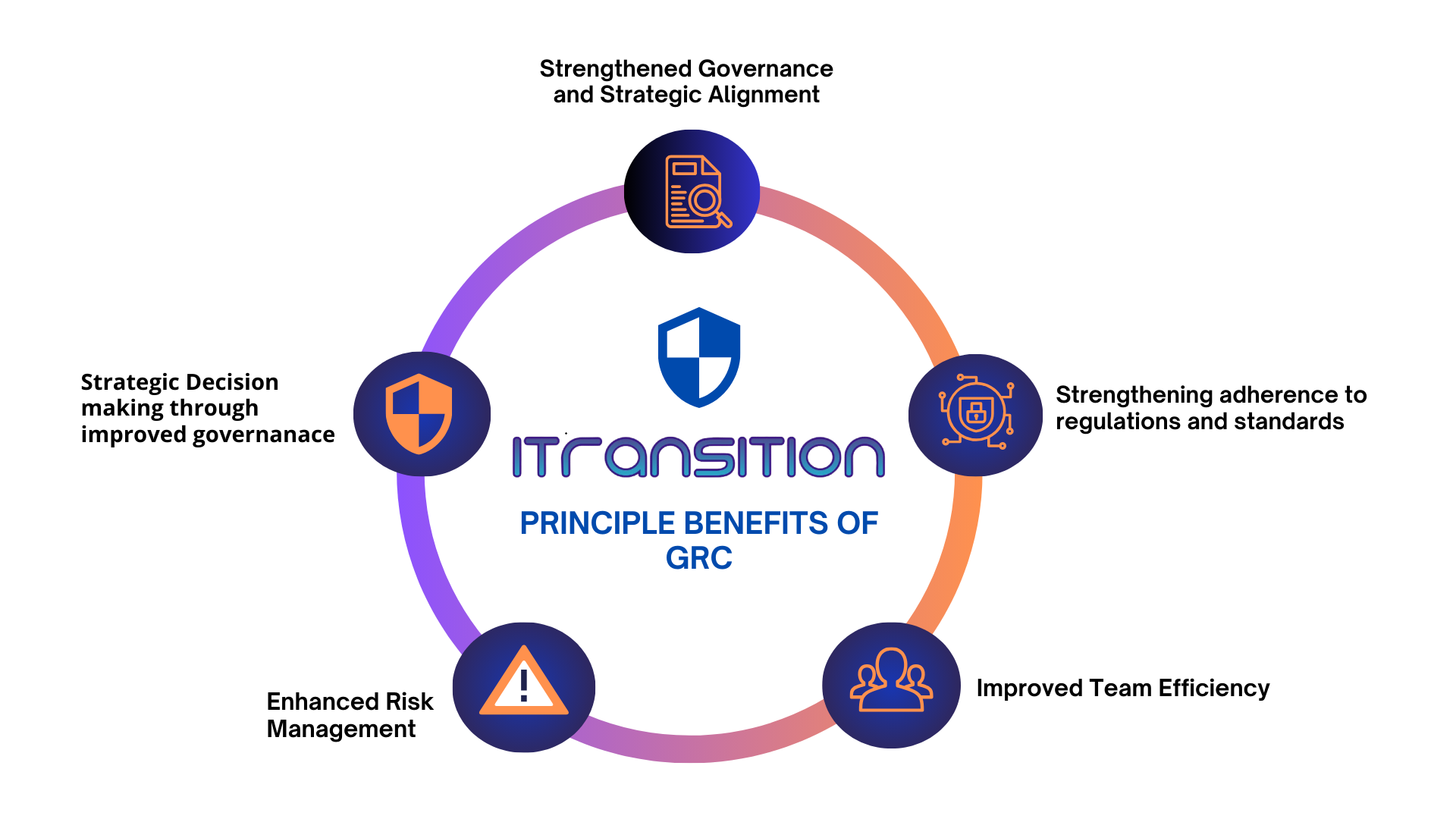 AT iTransition, we provide advanced Governance, Risk Management and Compliance (GRC) to helps organizations streamline processes, enhance decision-making, and improve overall efficiency while ensuring they remain compliant and resilient in a dynamic business environment. Our comprehensive GRC approach enables organizations to optimize compliance processes, mitigate risks, and improve governance practices, fostering sustainable growth and success.Our GRC services cover the following areas: